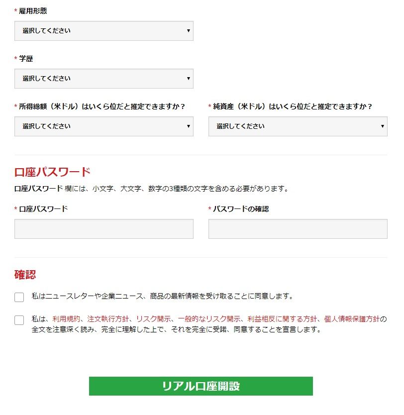 最後に口座パスワードですが、小文字、大文字、数字を交えたパスワードを入力してください。